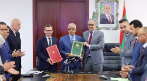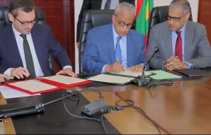وقع معالي وزير الشؤون الاقتصادية والتنمية، الدكتور عبد الله سليمان الشيخ سيديا، اليوم الجمعة بمقر الوزارة في نواكشوط، مع السفير الفرنسي السيد إيمانويل بيسنيي، اتفاقية تمويل ميسرة تقضي بتمويل مشروع لإنشاء عشر محطات للطاقة الهجينة مزودة بوحدات تخزين، بقيمة 39.2 مليون يورو (حوالي 1.18 مليار أوقية جديدة).